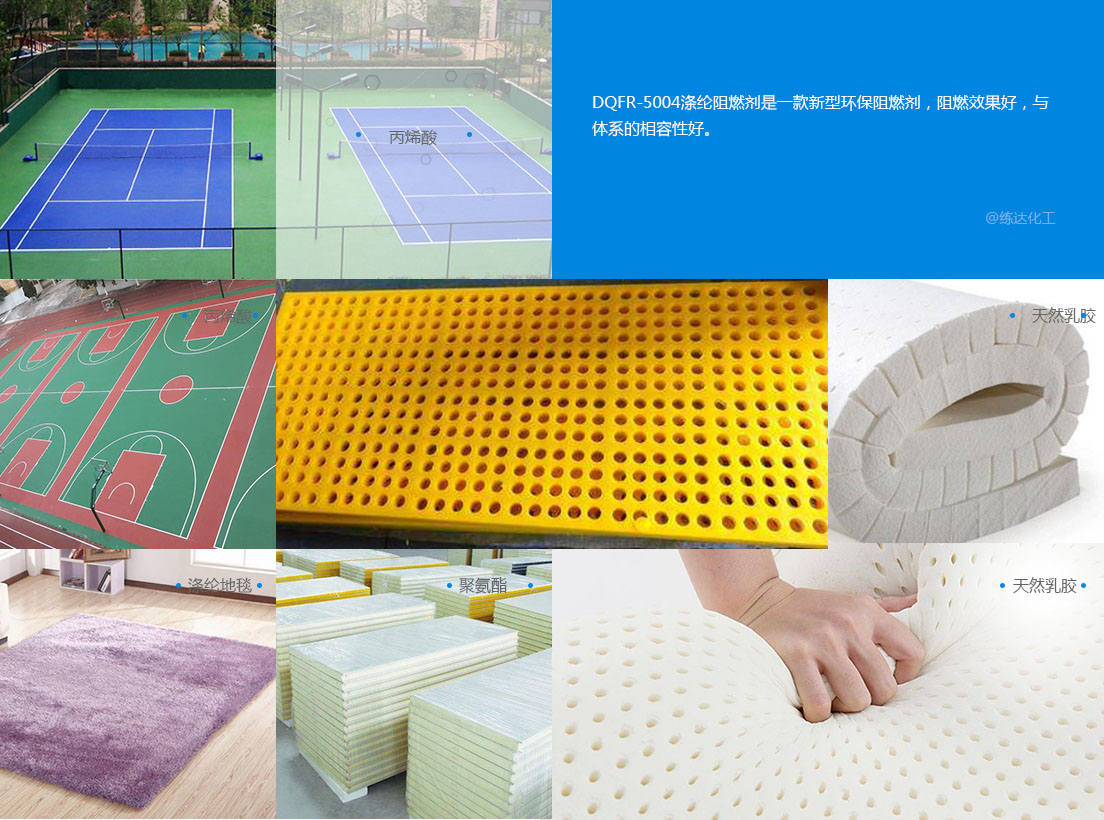 使用方法將2份丙烯酸乳液(30%含量)、1份阻燃劑和1份水混合均勻攪拌起泡涂覆在滌綸地毯的的兩面,上膠量控制在30%,烘干成型。該產(chǎn)品也可用于苯丙,聚氨酯和天然乳膠的阻燃等。用量占總量的(重量比)25%-30%左右;