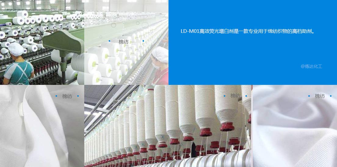 使用范圍廣LD-M01熒光增白劑是一款用于綿紡織物的高檔助劑。03